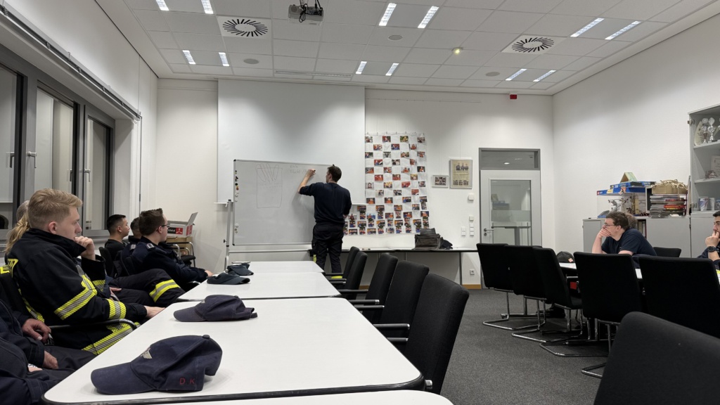 Heute Abend hielt unser neu gewählter Gruppenführer Mattis einen Vortrag über die Verbrennung, Brandverlaufskurven und taktische Ventilation. Den Vortrag untermalte er mit reichlich Praxiserfahrung und konnte uns so alle mitnehmen. Tausend Dank für den interessanten und lehrreichen Dienstabend! Im Anschluss fanden wir uns mit den anderen drei Zügen zum gemeinschaftlichen Grillen in der Fahrzeughalle der Hauptwache ein.